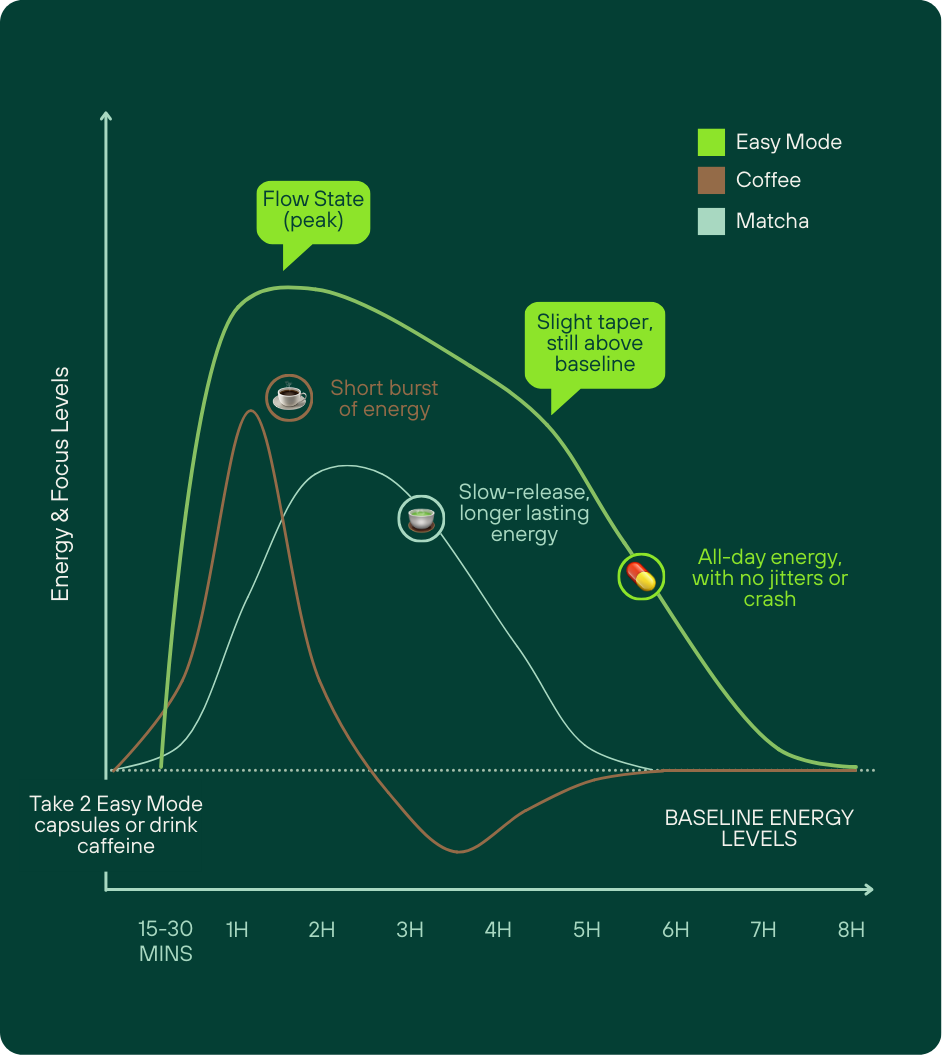 Easy Mode is designed for professionals, students, gamers, athletes, and creatives who want a science-backed alternative way to unlock peak performance without the caffeine dependency.